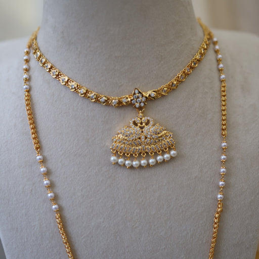 View full detailsHeritage gold plated gold padakam necklace set with earrings HPS2017