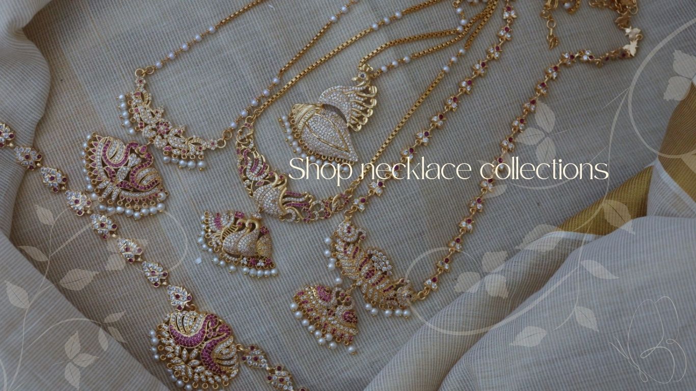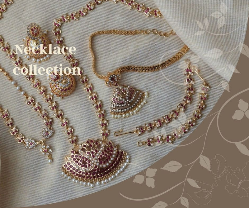 View full detailsHeritage gold plated padakam ruby white short necklace H8772