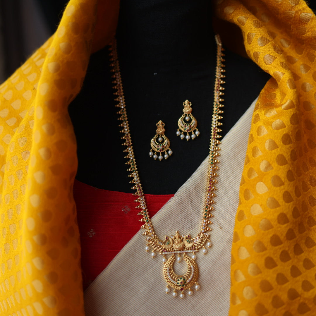 View full detailsHeritage gold plated pearl pendant padakam long necklace HP6146