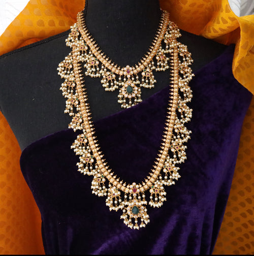 View full detailsHeritage gold plated short and long padakam set necklace HP217