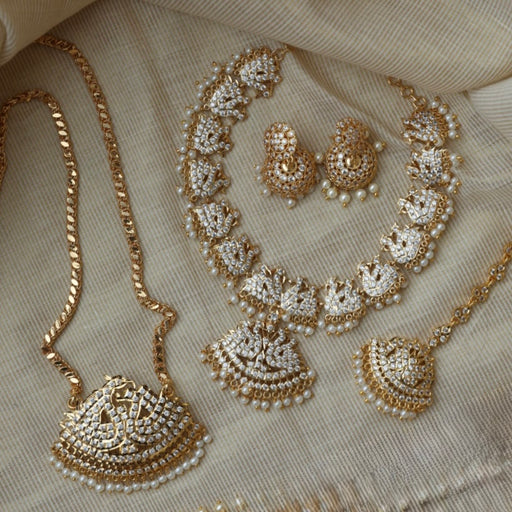 View full detailsHeritage gold plated ruby white stone padakam necklace set with earrings HP3045