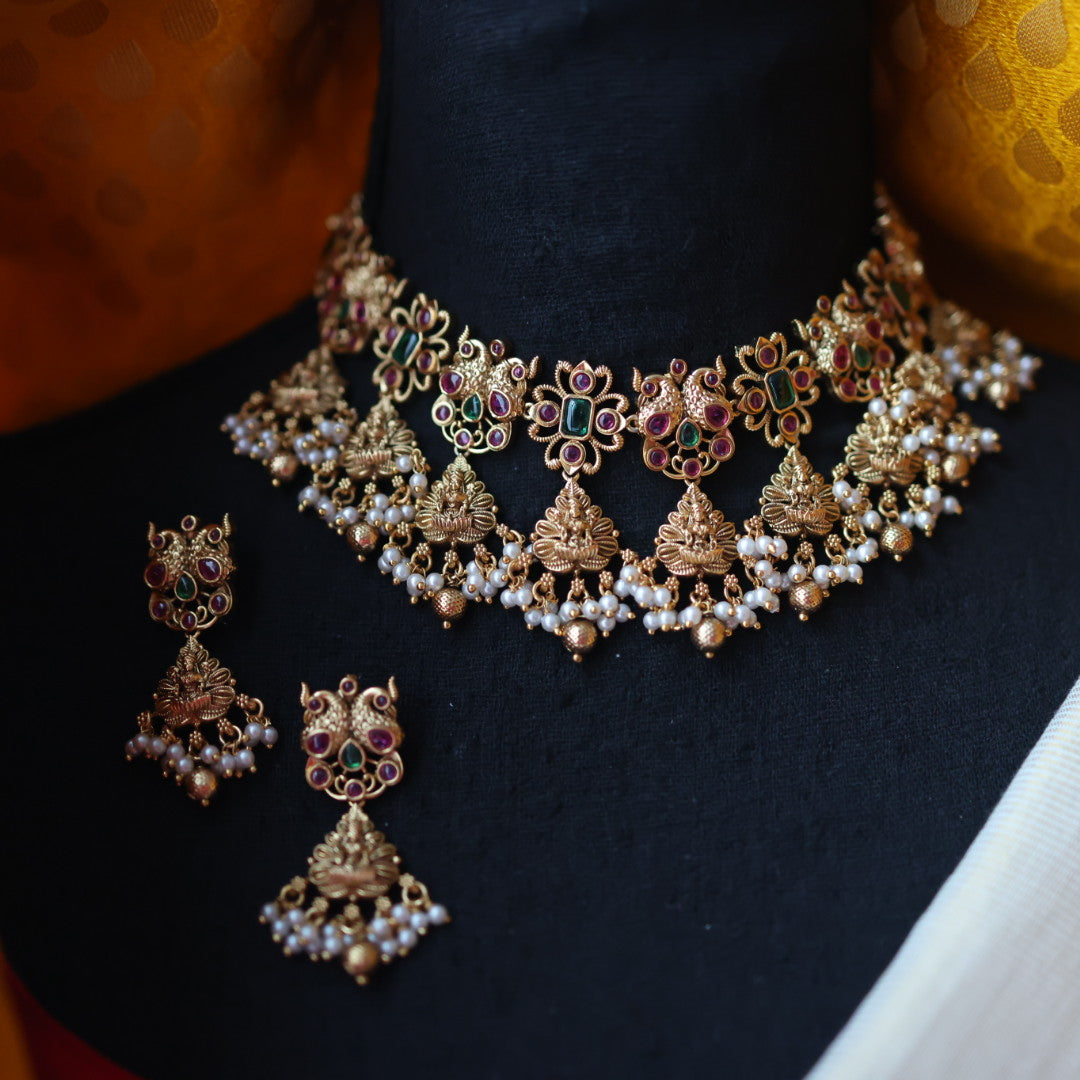 View full detailsHeritage gold plated gold padakam necklace set with earrings HP301