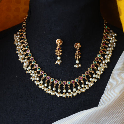 View full detailsAntique ruby green pearl short necklace and earrings RUB1799