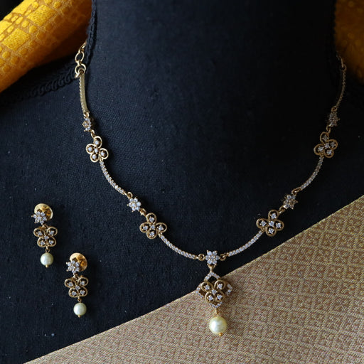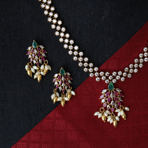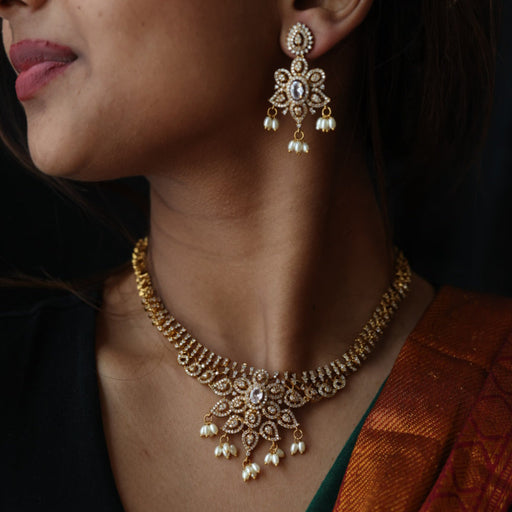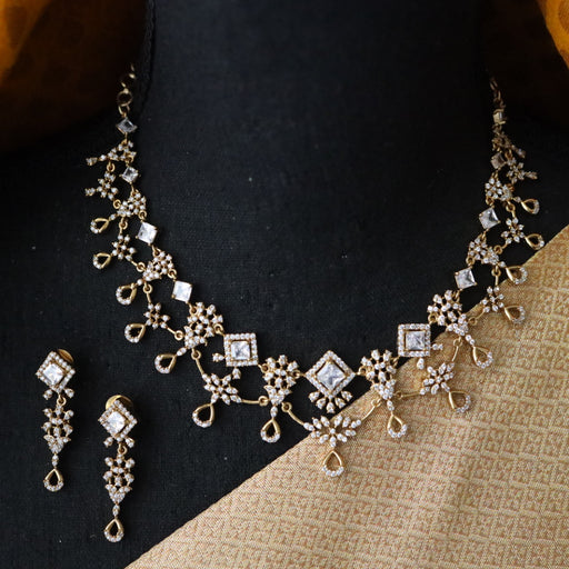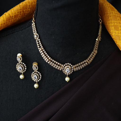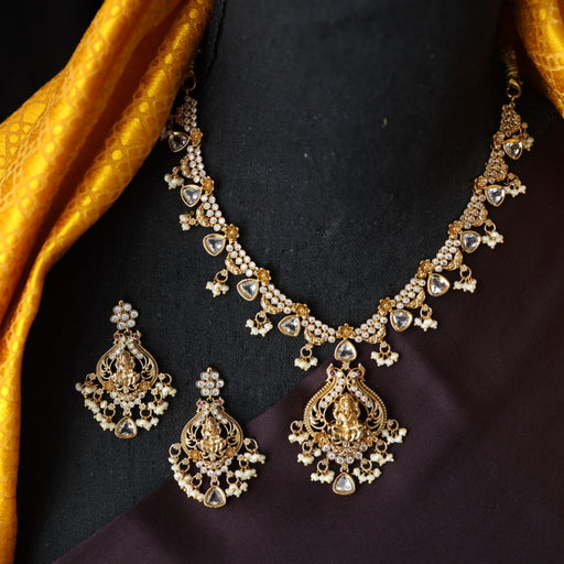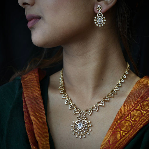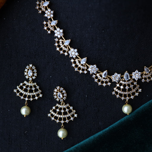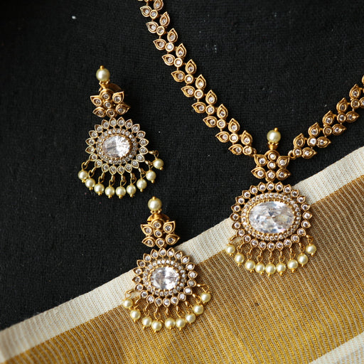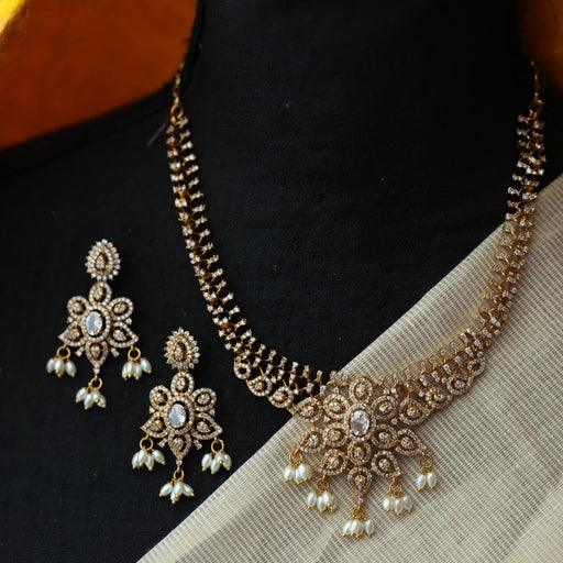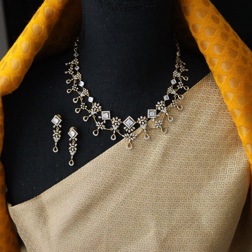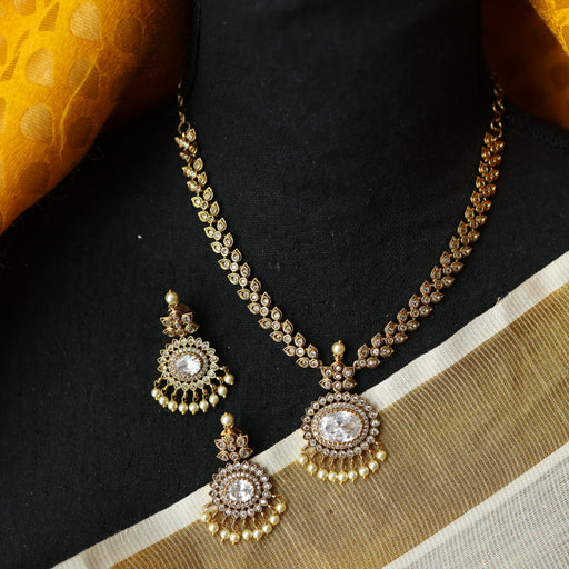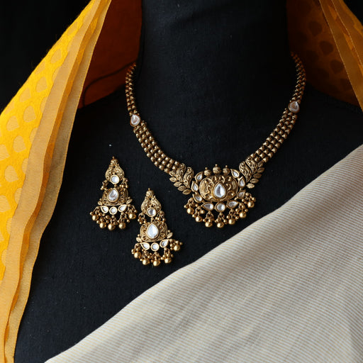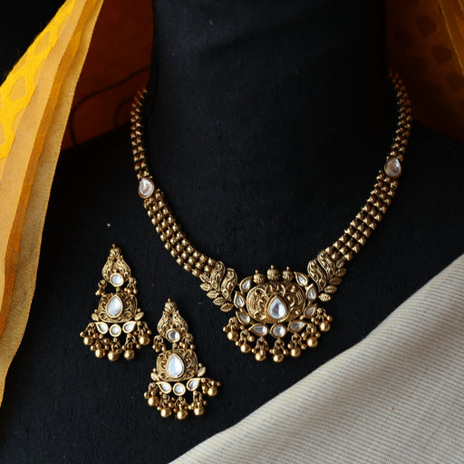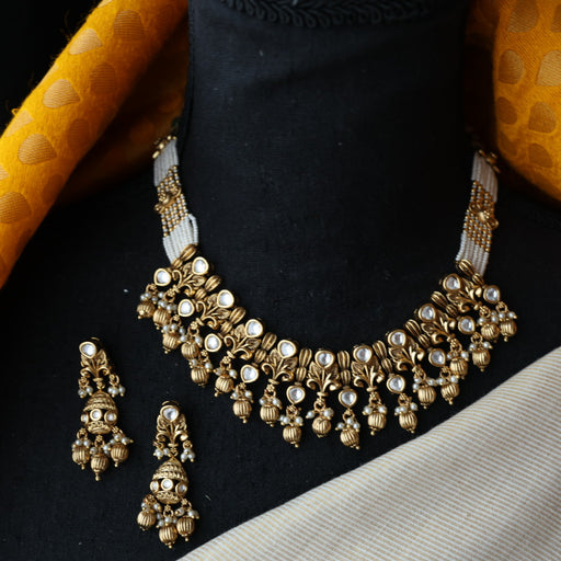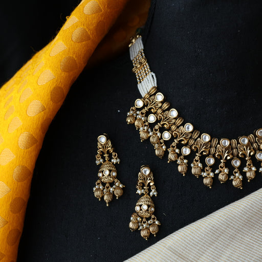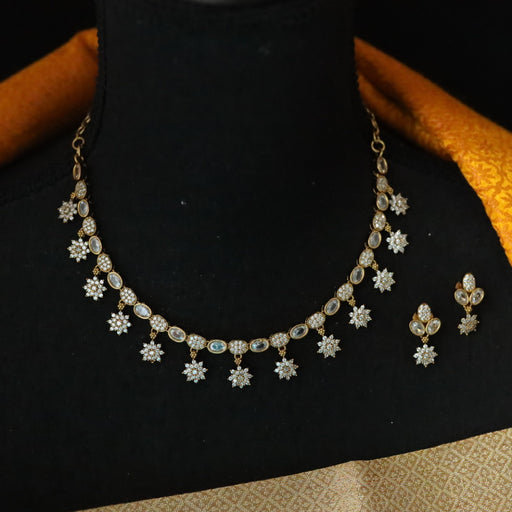 View full detailsAntique white stone short necklace with earrings SS11350