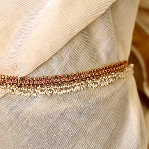 View full detailsAntiqueruby stone and pearl design waistchain AW41566