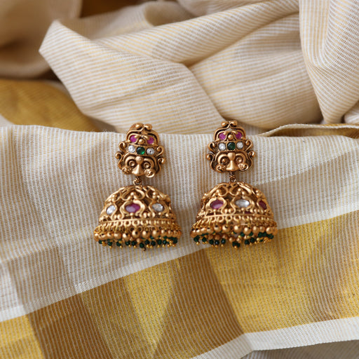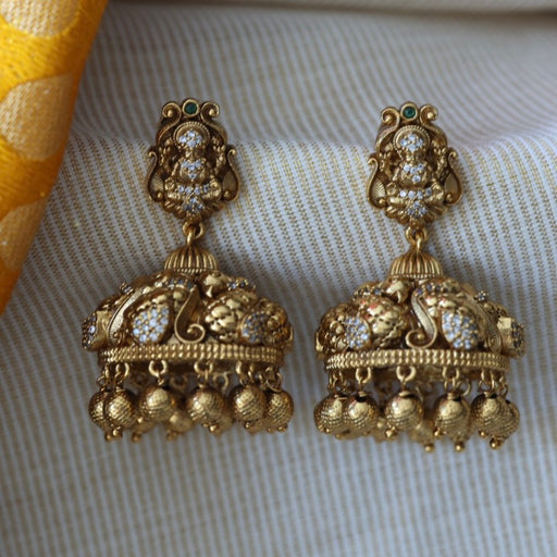 View full detailsAntique white stone temple jumka earrings AJ481