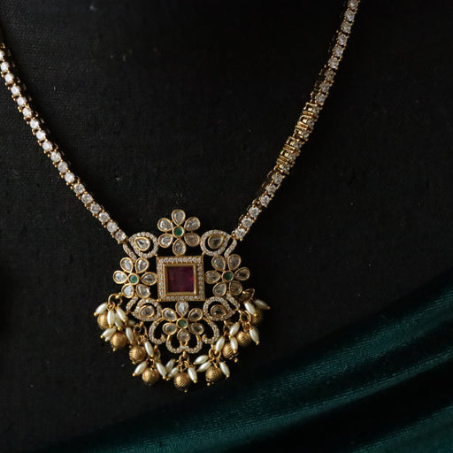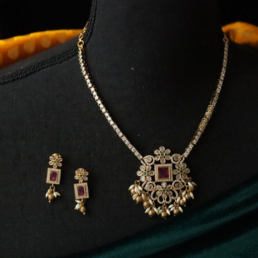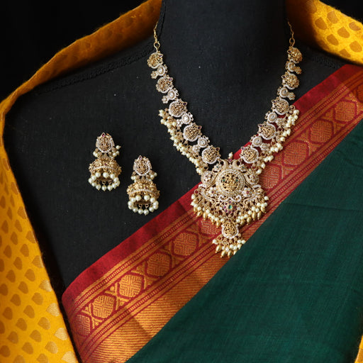 Details & Specifications: Materials used: CZ Stone , copper metal with Antique Plating Category - Temple Jewellery CONTACT US Feel free to ...