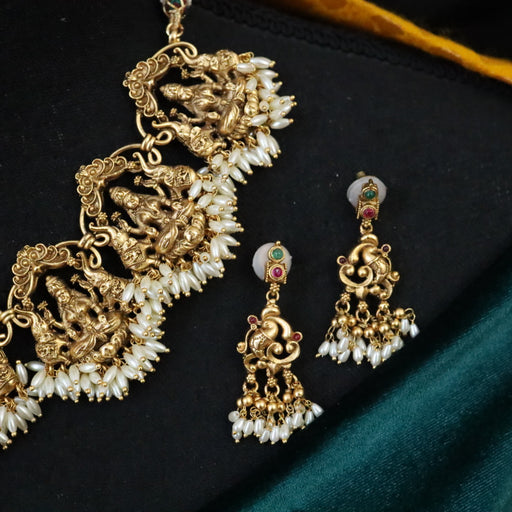 View full detailsAntique white stone temple design short necklace and earrings S1B220