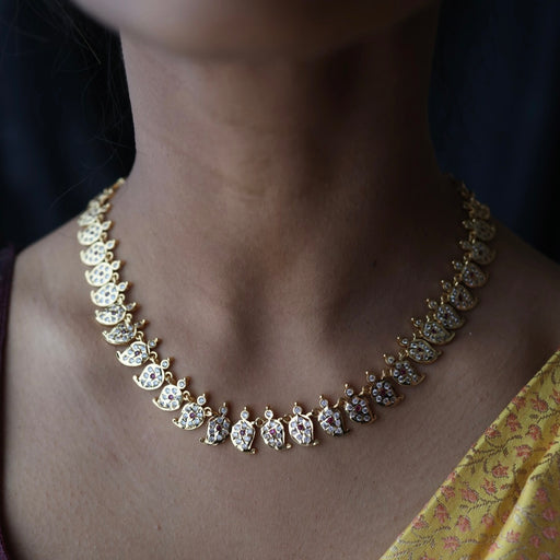 View full detailsHeritage gold plated ruby white stone mango short necklace H8911