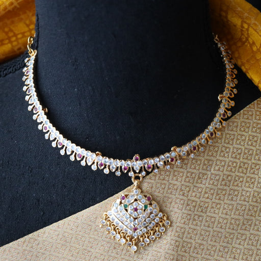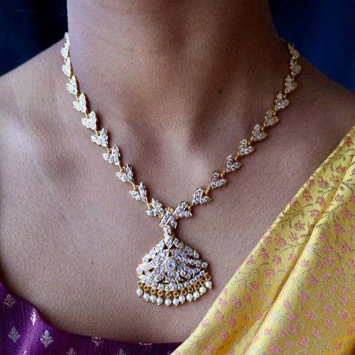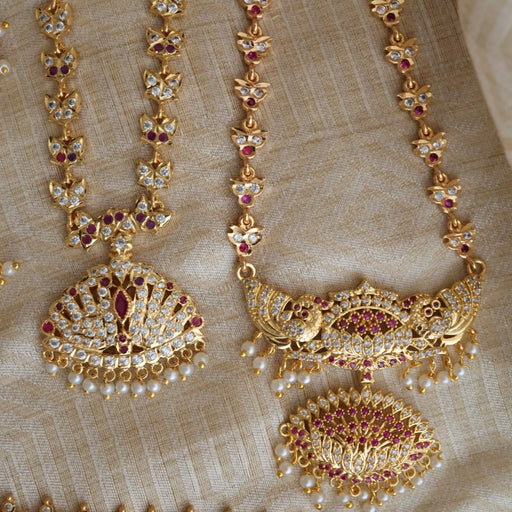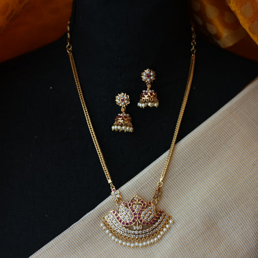 View full detailsHeritage gold plated ruby white stone padakam necklace set with earrings HLS376