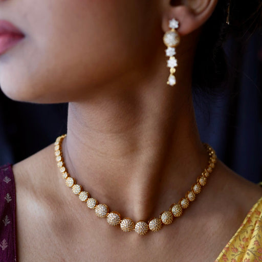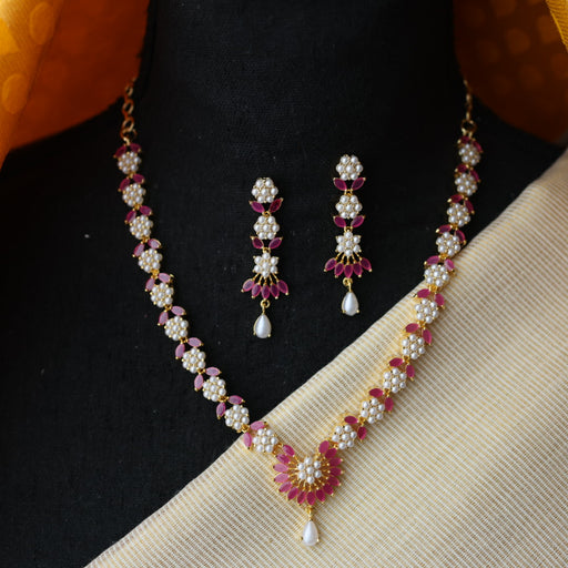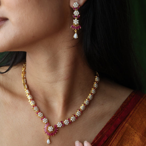 View full detailsHeritage gold plated ruby white short necklace with earrings TTH1019