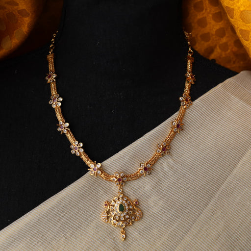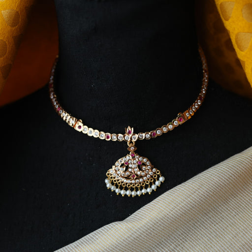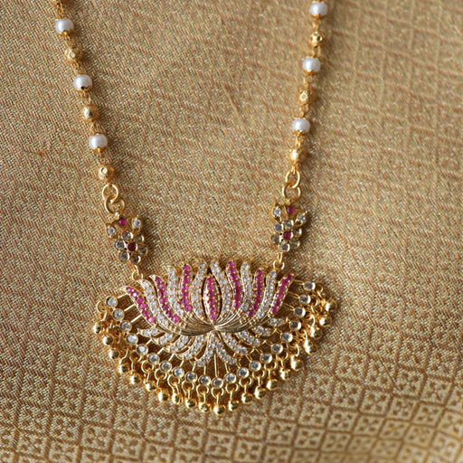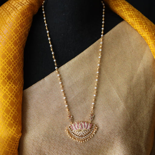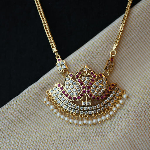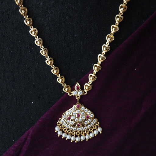 View full detailsHeritage gold plated ruby white stone padakam necklace HP889