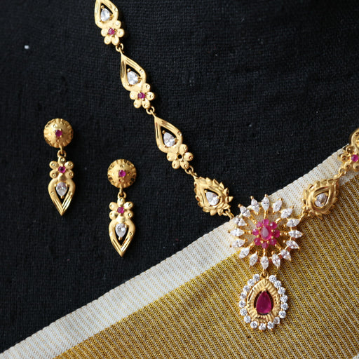 View full detailsHeritage gold plated ruby white stone padakam necklace set with earrings HP3045
