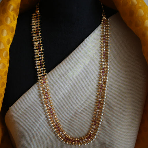 Heritage gold plated ruby white stone medium padakam long necklace 982455