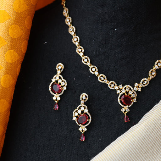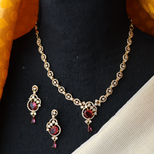 View full detailsHeritage gold plated ruby white stone necklace with earrings HP202