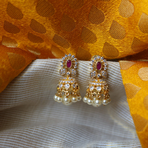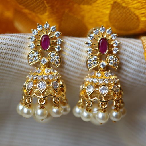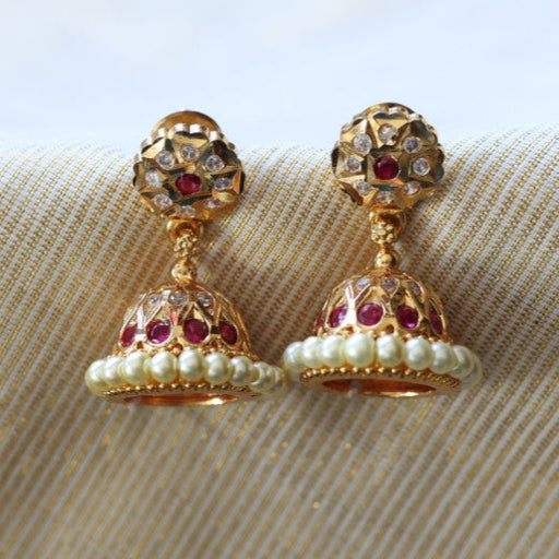 View full detailsHeritage gold plated ruby white stone jumka earrings HJ047