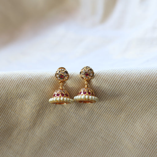View full detailsHeritage gold plated ruby white stone jumka earrings HJ0490