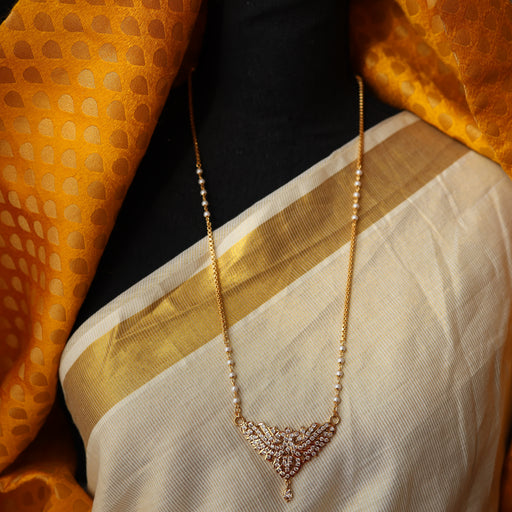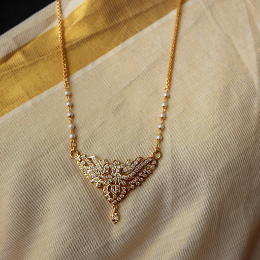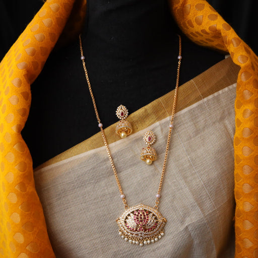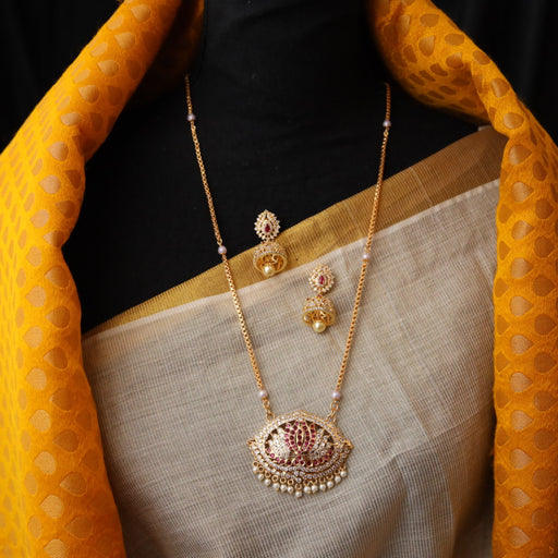 View full detailsHeritage gold plated ruby white stone padakam chain with earrings HP014