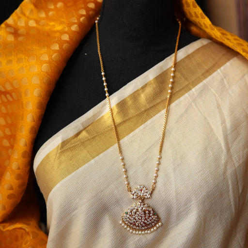View full detailsHeritage gold plated ruby white stone padakam long necklace HP9988