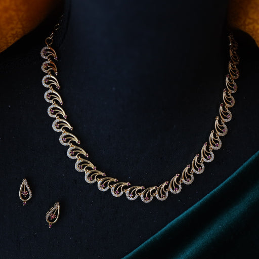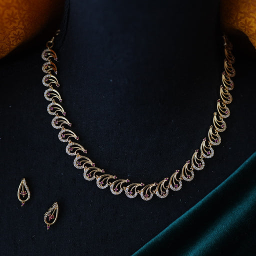 View full detailsHeritage gold plated ruby white stone short necklace set with earrings H2013