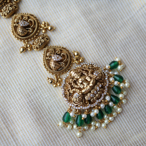 View full detailsAntique gpld temple design short necklace with earrings G1004