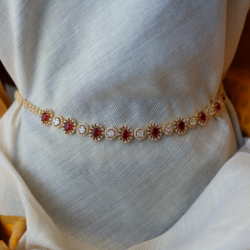 View full detailsHeritage gold and plated ruby white stone waistchain HW923