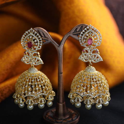 View full detailsHeritage cz ruby and white stone jumka earrings 124667
