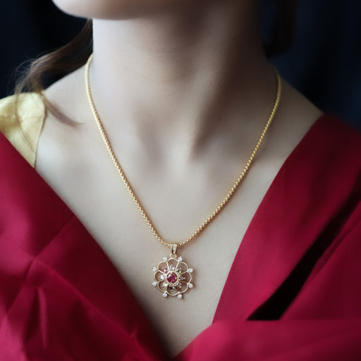 Heritage gold plated padakam ruby white short necklace H8772