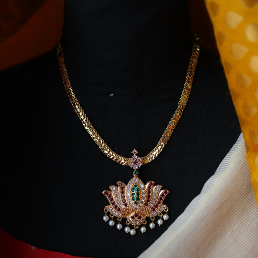 View full detailsHeritage gold plated ruby stone and pearl padakam long chain 566688