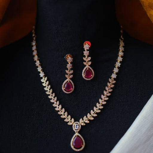 View full detailsHeritage gold plated ruby white stone short necklace with earrings H5711