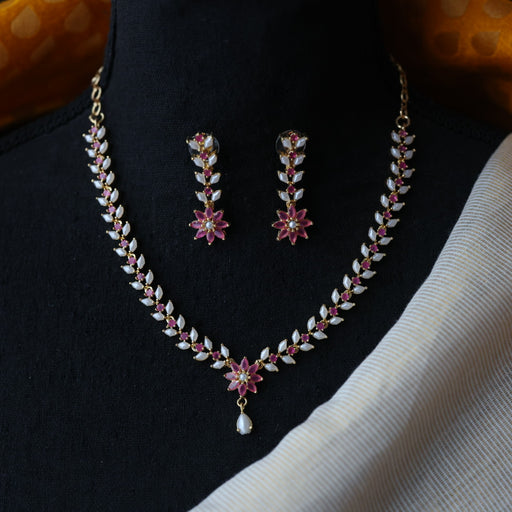 View full detailsPadmini pearl ruby green stone choker necklace and earrings PAD678
