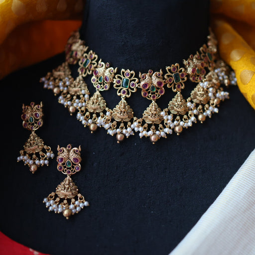 View full detailsAntique gold temple design choker necklace and earrings CCB11456