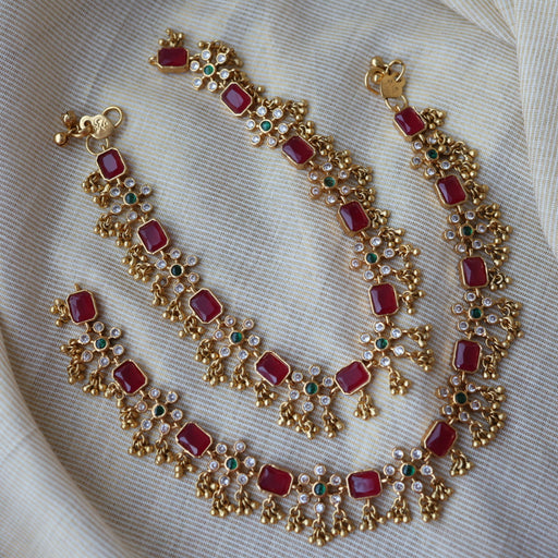 View full detailsHeritage gold ruby green stone traditional anklet HAN30