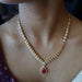 Heritage gold plated ruby white stone short necklace with earrings H9571