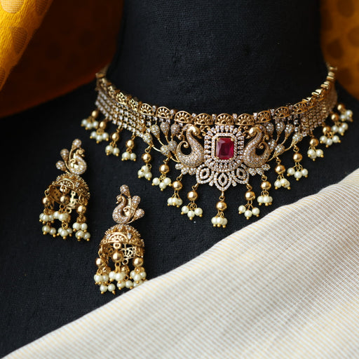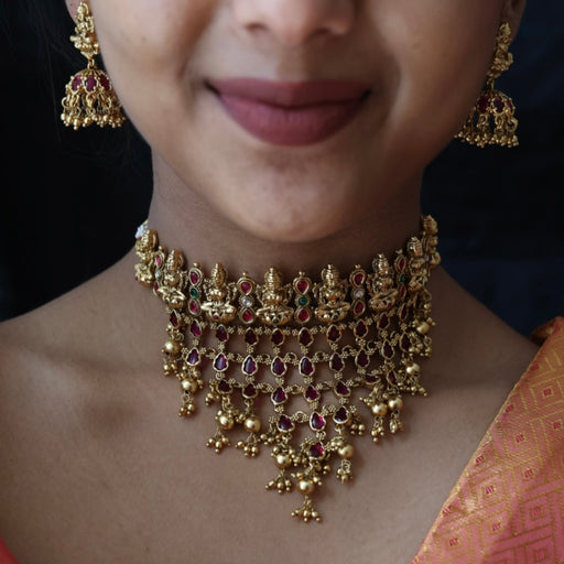 View full detailsAntique ruby stone choker necklace with earrings CCB1432