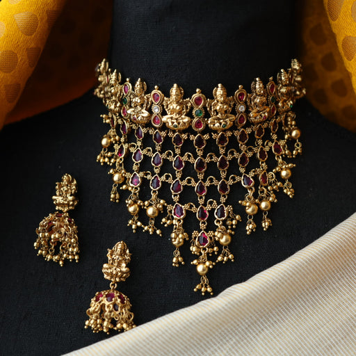 View full detailsAntique gold ruby stone choker necklace and earrings CCB1664