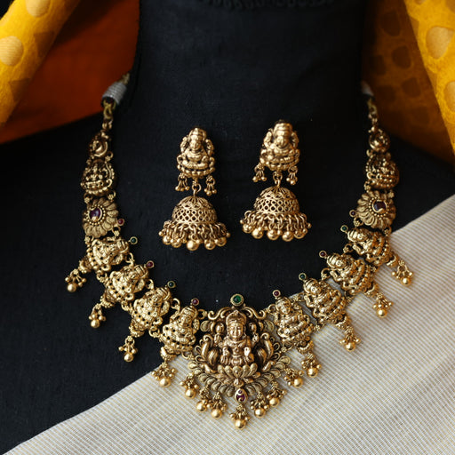View full detailsAntique gold temple design short necklace and earrings G9999