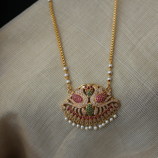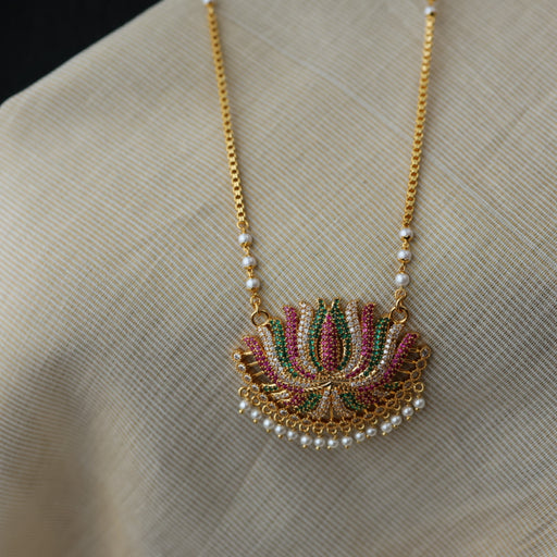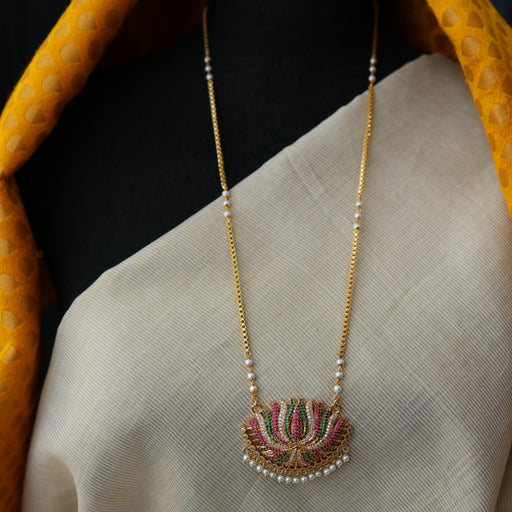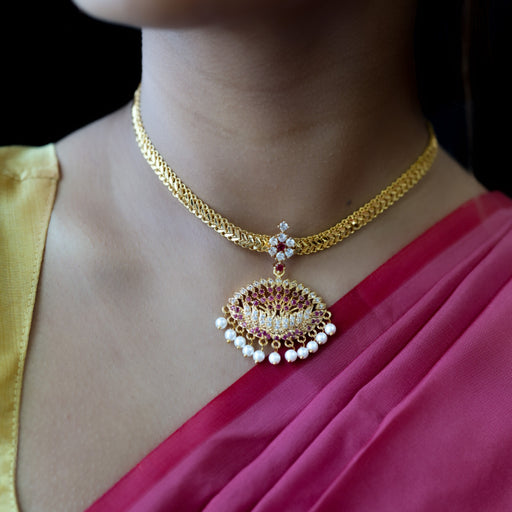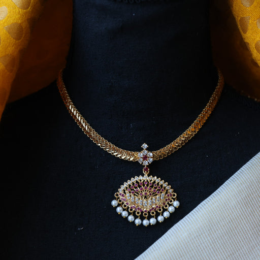 View full detailsHeritage gold plated ruby white stone padakam necklace HP253