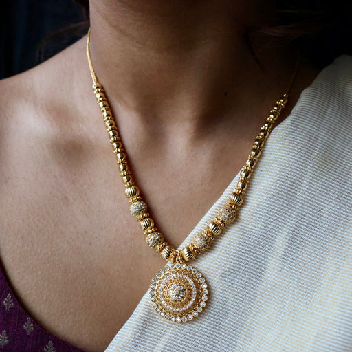 View full detailsHeritage gold plated white stone long padakam necklace HP1116
