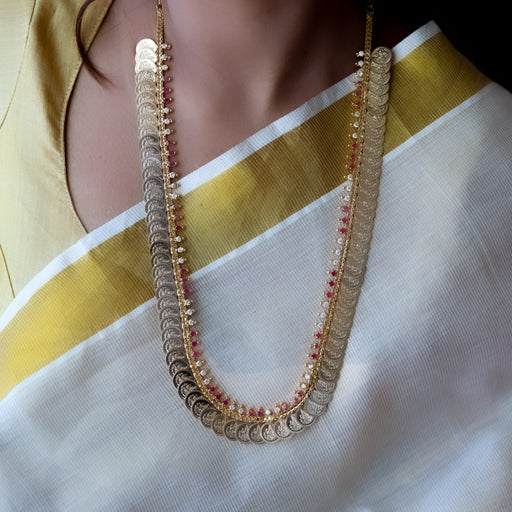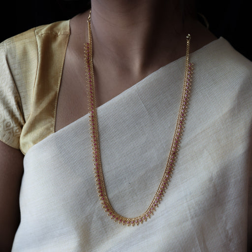 View full detailsHeritage gold plated ruby white stone long padakam necklace HP322