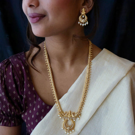 View full detailsAntique gold temple design long necklace with earrings LL04059