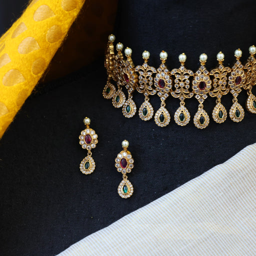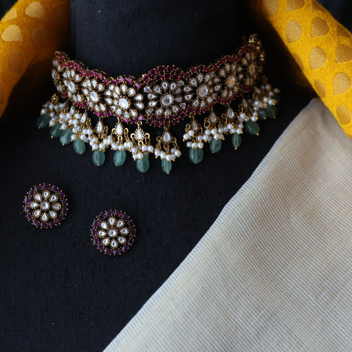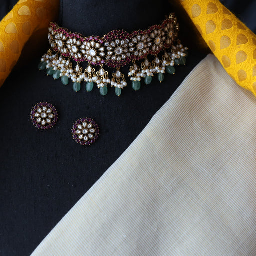 View full detailsAntique ruby green stone choker necklace and earrings CCB20982