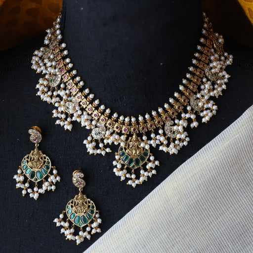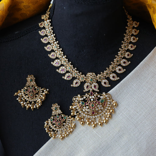 View full detailsHeritage gold plated white padakam necklace set with earrings HP9155