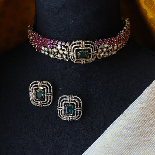 View full detailsAntique ruby green stone short necklace with earrings LL02346