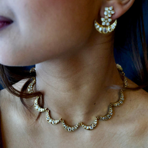 View full detailsHeritage gold plated ruby white stone short necklace H0046