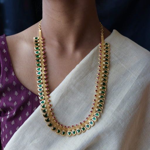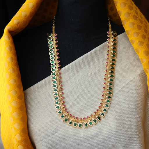 View full detailsHeritage gold plated green stone mango long necklace HL02366