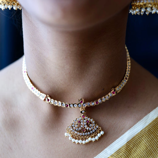 Heritage gold plated ruby white stone choker necklace H02389