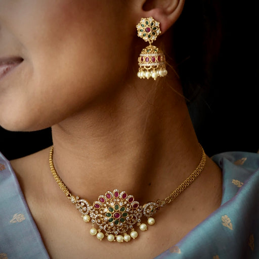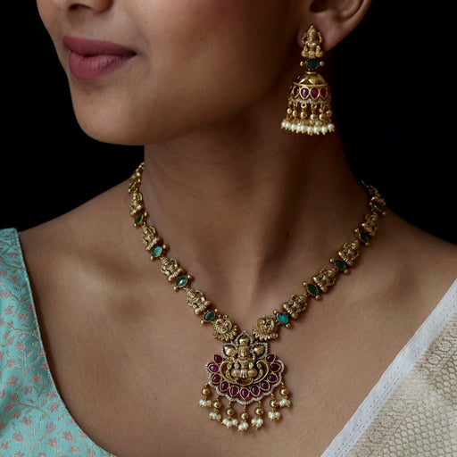 View full detailsAntique navarathna short necklace with earrings S1B1679