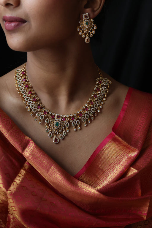 View full detailsAntique white and ruby stone short necklace with earrings TTS4800