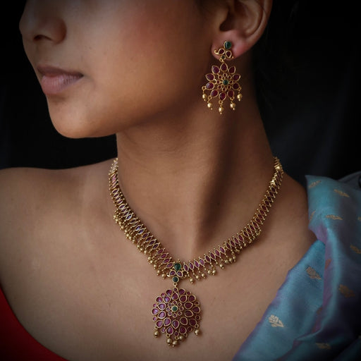 View full detailsAntique ruby green stone short necklace with earrings TTS421